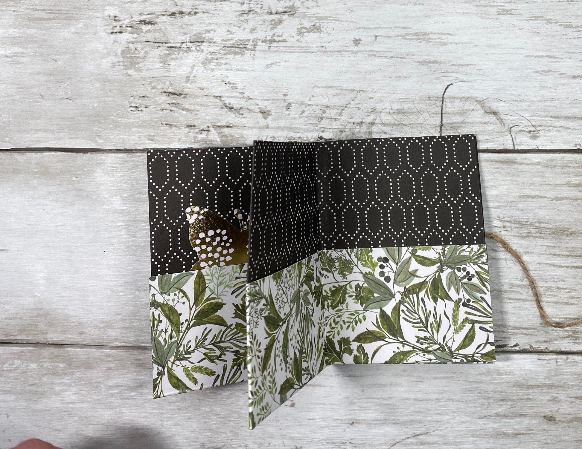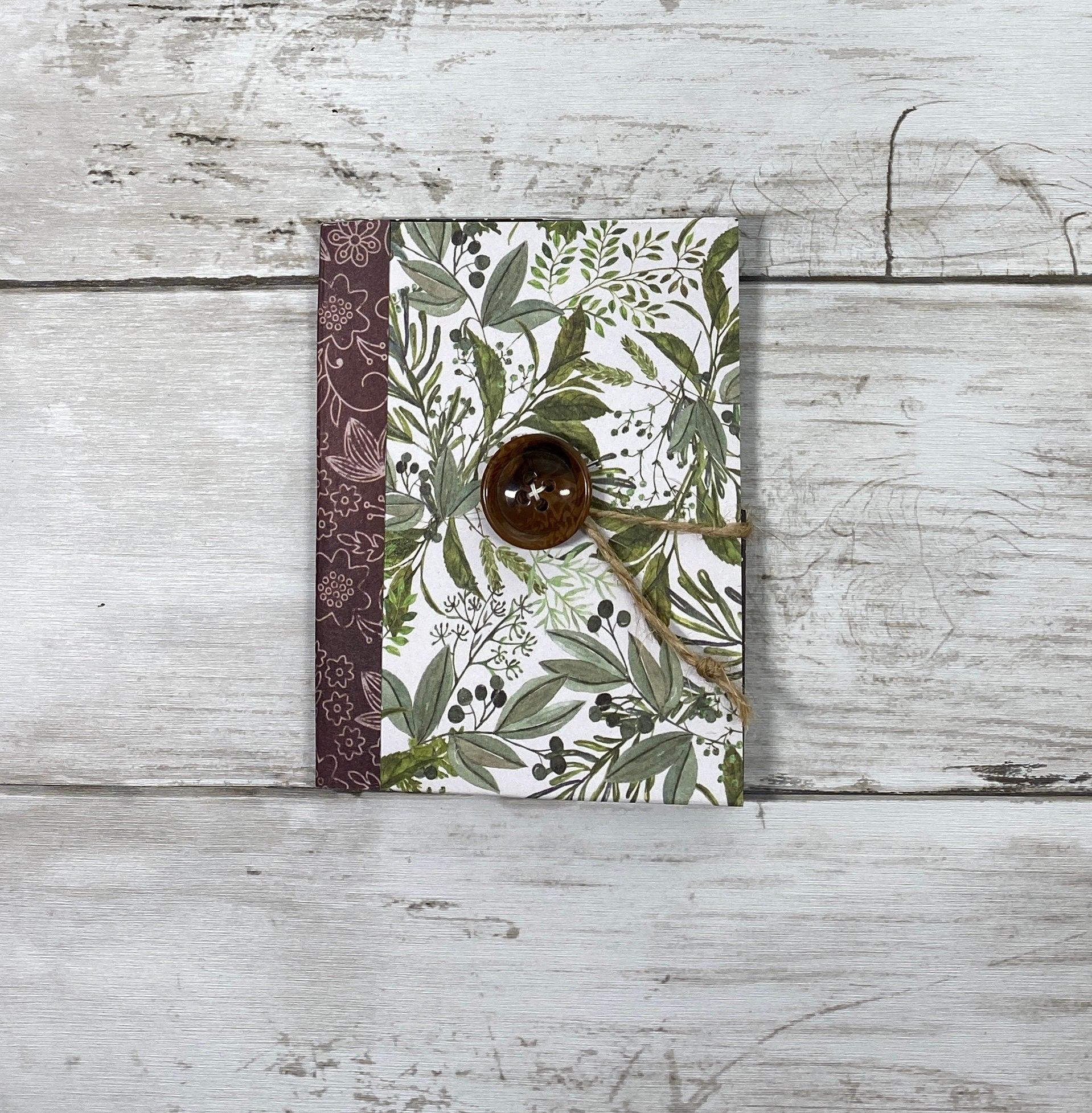 Do you need something to put your ATC cards in? Or are you giving ATCS as a gift? What is an ATC Card?An artist trading card (ATC) is a small artwork created and traded among artists. They are typically 2.5 inches by 3.5 inches in size and can be made from various materials such as paper, fabric, or mixed media. ATCs are often used as a way for artists to showcase their skills, experiment with new techniques, and connect with other artists..This ATC Mini Album will hold 8 ATC cards. The green fern design showcases the butterfly on the front. It has a twine button closure and is 3" wide x 4" tall. Want to see how I made these little ATC books?https://youtu.be/eIkDYax9OAQwww.thetruckingscribe.com