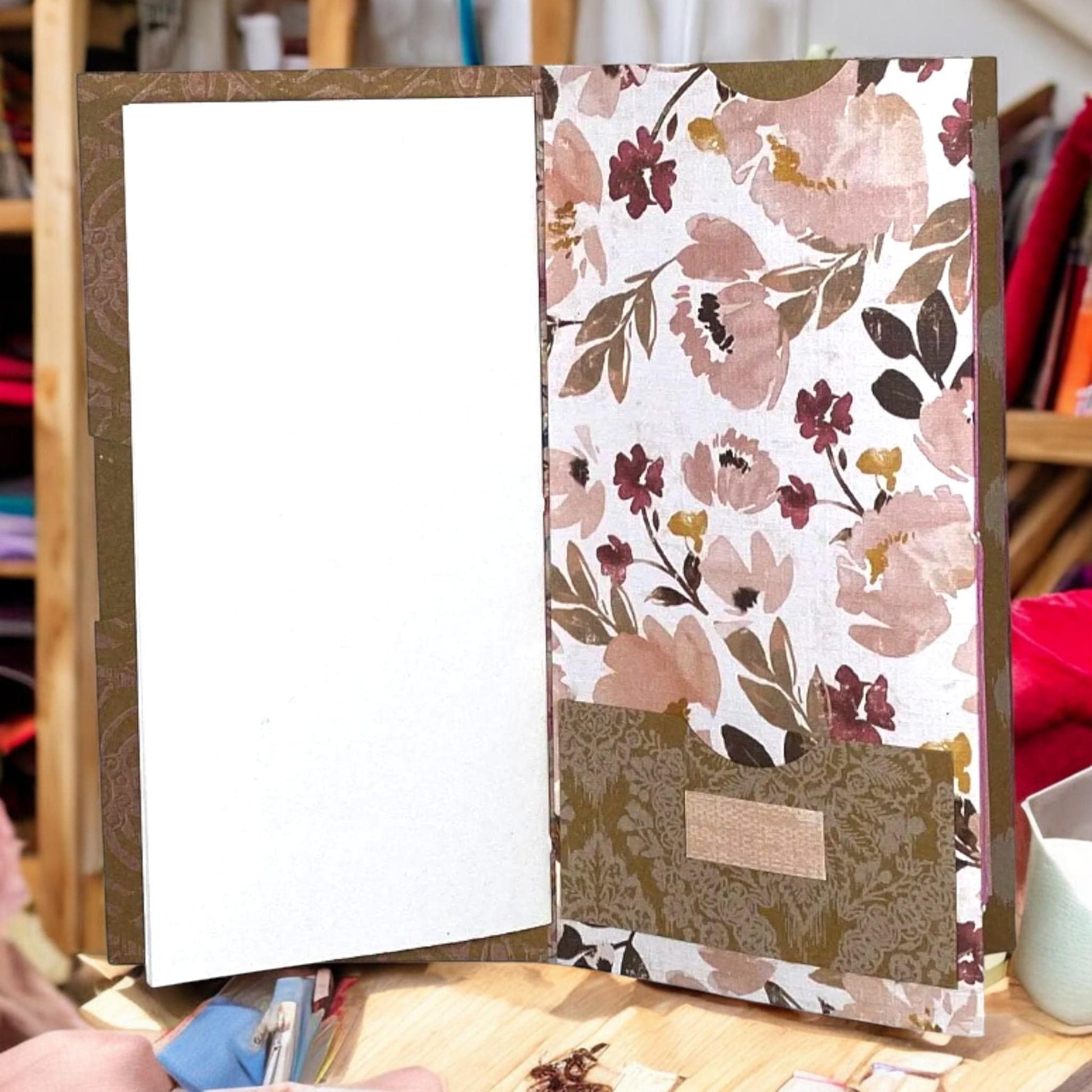 Perfect for Halloween journaling, magical notes, or year-round moody vibes, this handmade piece folds out in a unique flip-flop design to reveal layers of texture, pockets, and journaling space.