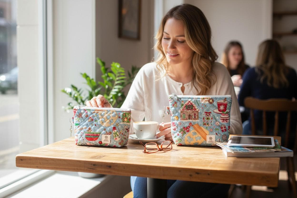Gingerbread Gift Bag & Pouch Set – Quilted Christmas Bundle (3-Pack) – Holiday Baking Drawstring Zipper Pouch Set