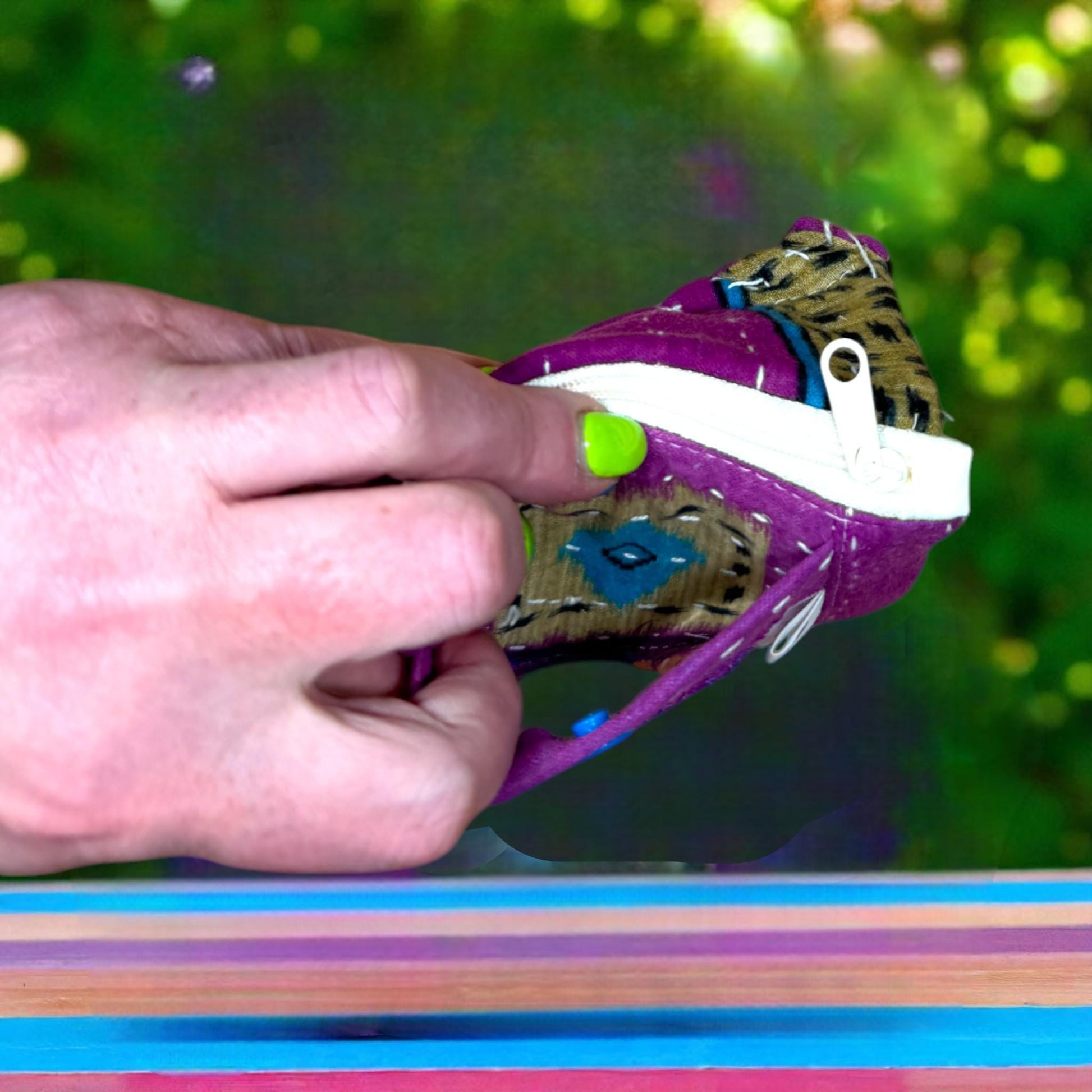 The Kantha Trail Wallet combines rich purple hues and beautifully imperfect stitching with practical features that make it perfect for everyday adventures. It's lightweight, eye-catching, and full of character - truly a functional piece of art.