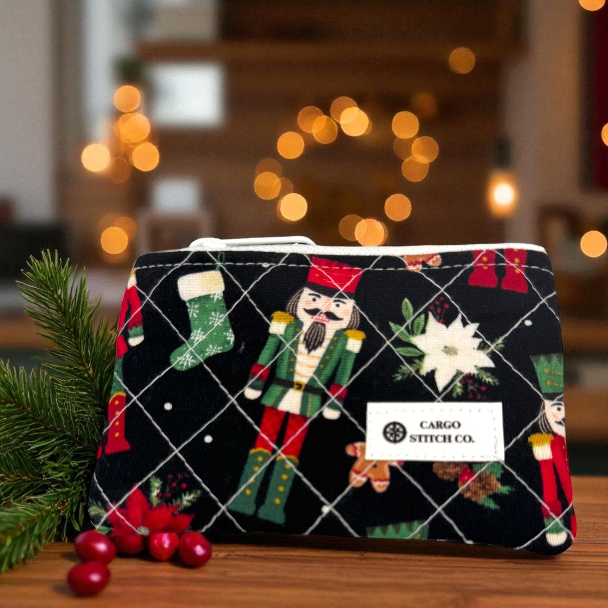 Mini Flat Quilted Zipper Pouch – 5x3 Christmas Coin Purse – Dog & Nutcracker Designs - Choose Your Design - Earbud Pouch