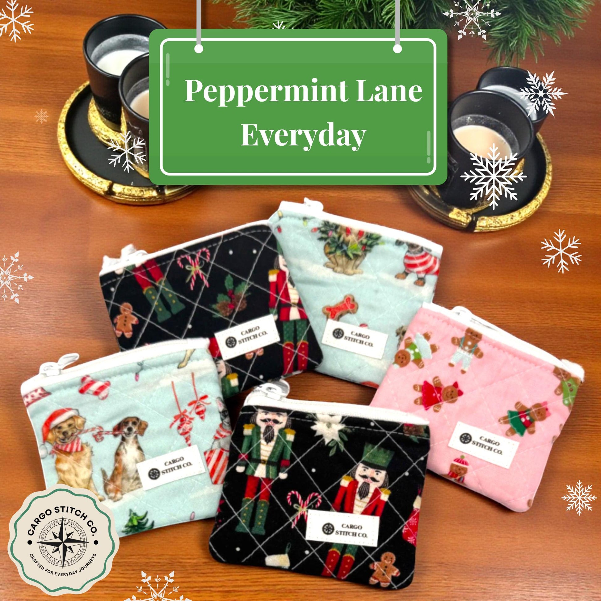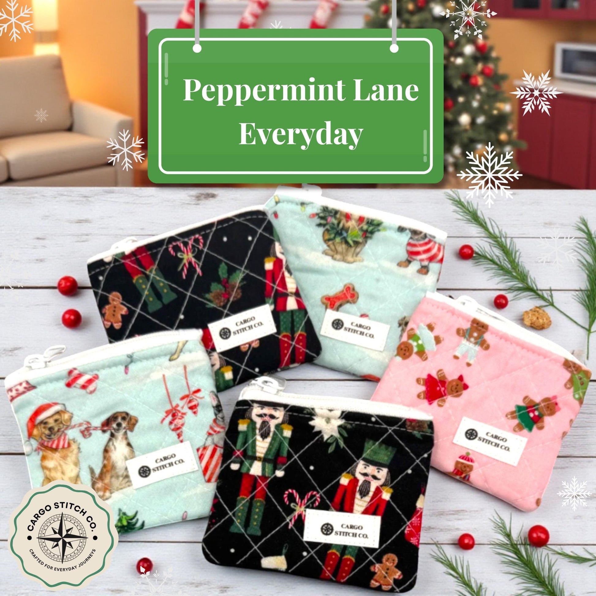 Mini Quilted Holiday Coin Pouch – 4x3 Christmas Zipper Wallet – Handmade Gift by Cargo Stitch Co. – Earbud Case - Hearing Aid Pouch