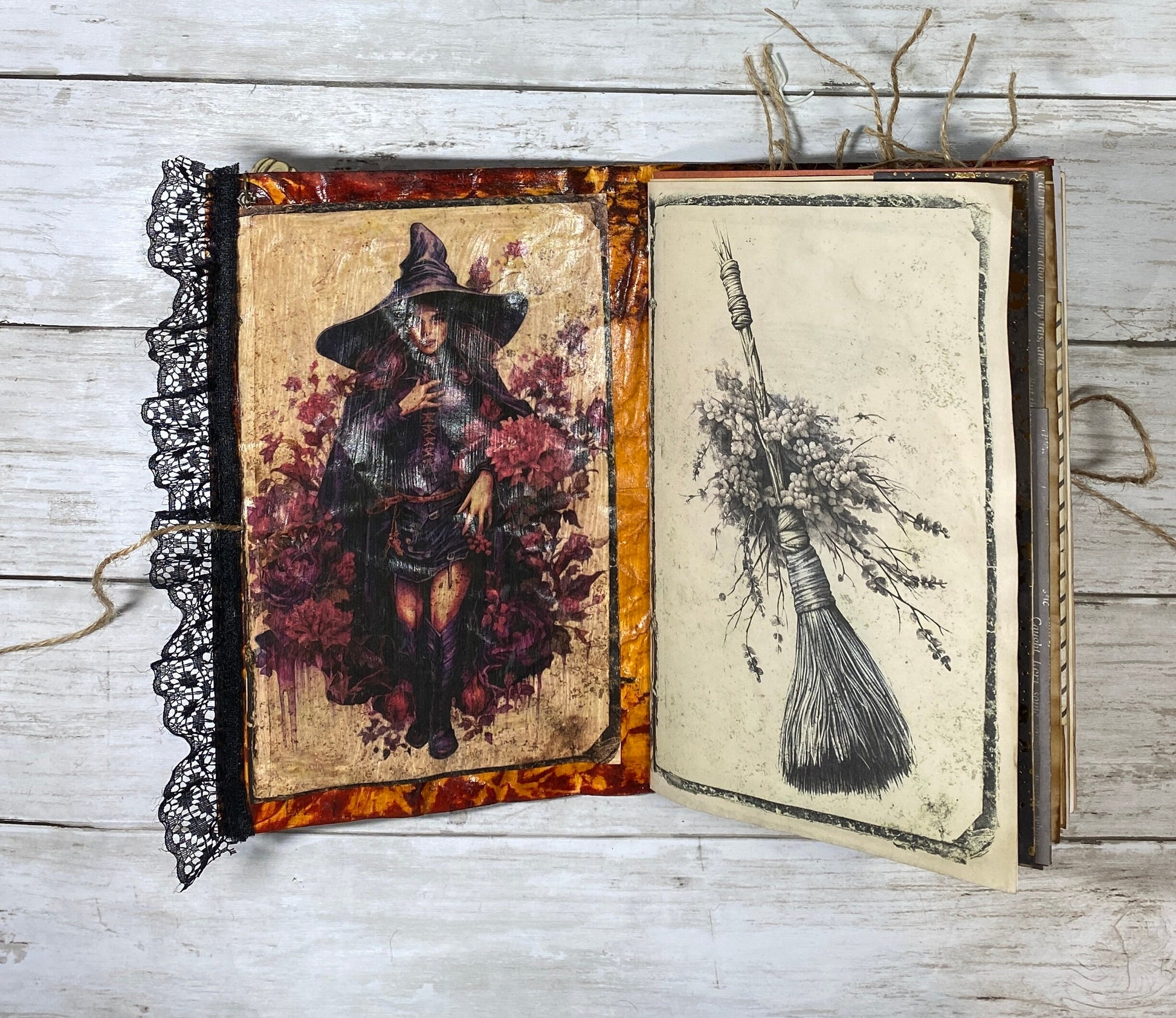 Grungy Gothic Halloween Junk Journal – Handmade Witchy Book of Shadows, Vintage Ephemera Spellbook, One-of-a-Kind Codex