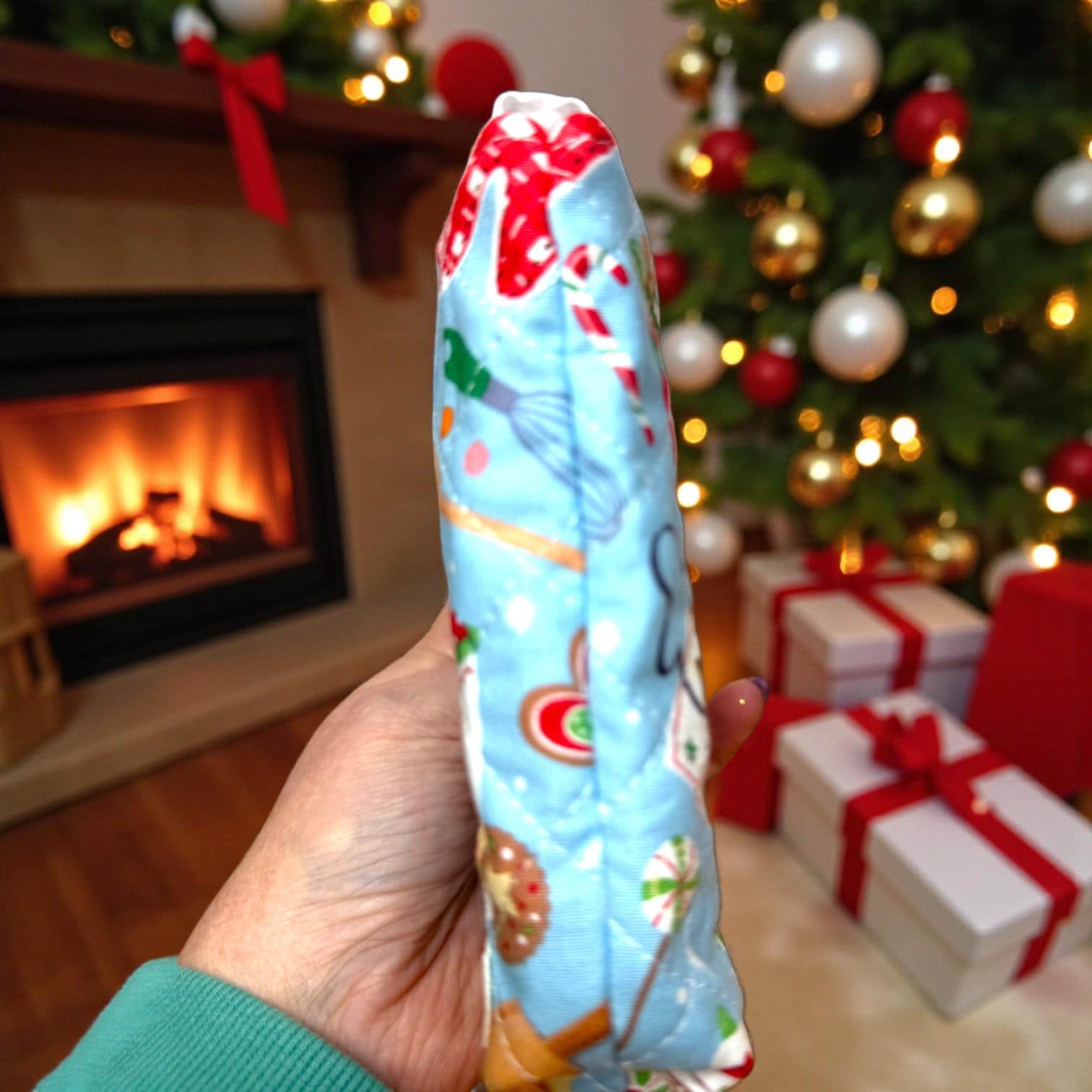 This handmade quilted trio from the Peppermint Lane Everyday Collection combines cheerful gingerbread kitchens and playful holiday kittens, designed to add a cozy touch to your gifting, storage, or daily routine.