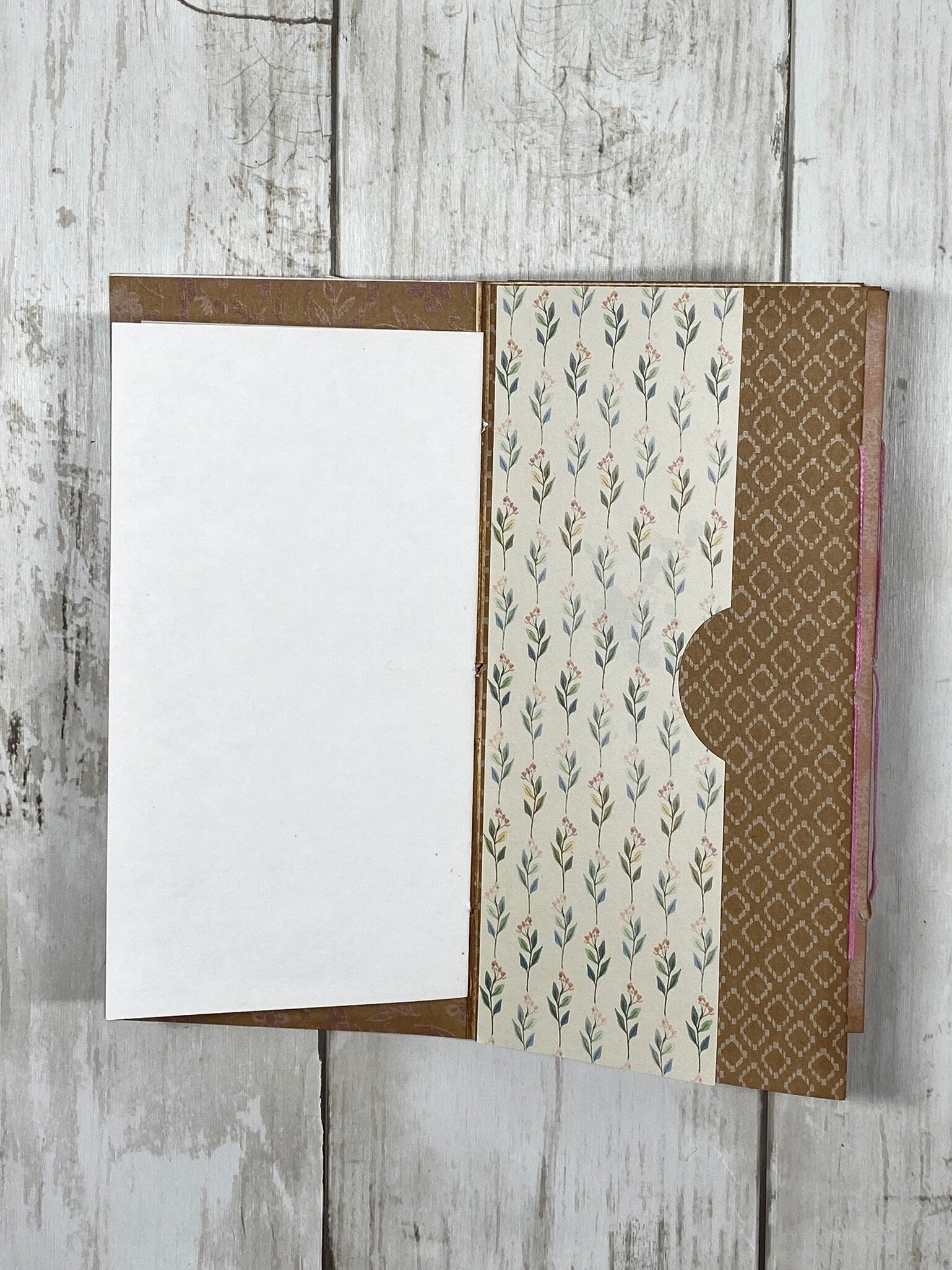 Handmade Cover: Created with scrapbook papers instead of envelopes for a sturdier finish.