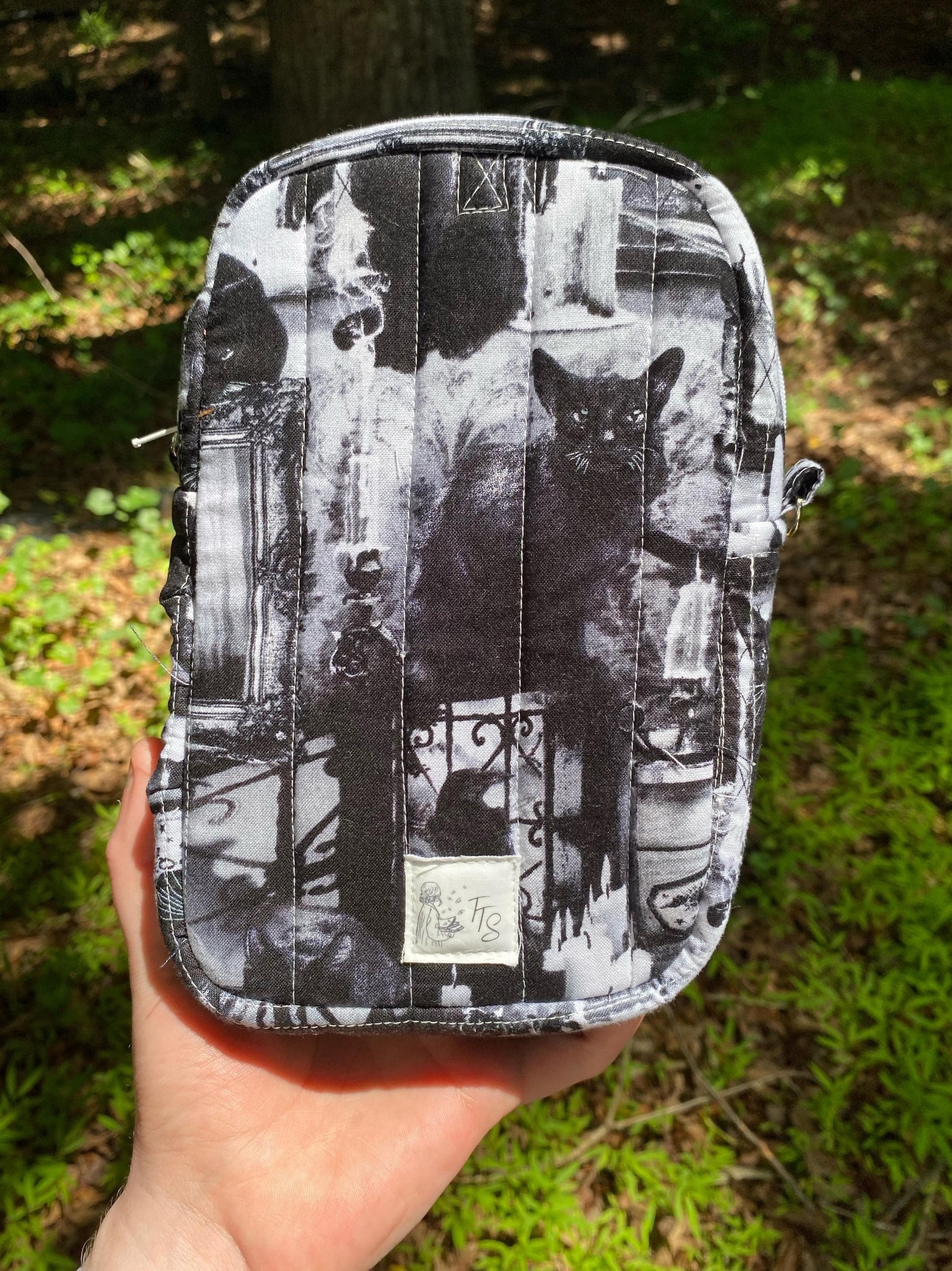 Quilted Halloween Crossbody Bag • 5″ × 8″ Black Cat Purse • Adjustable Strap • Handmade Seasonal Accessory