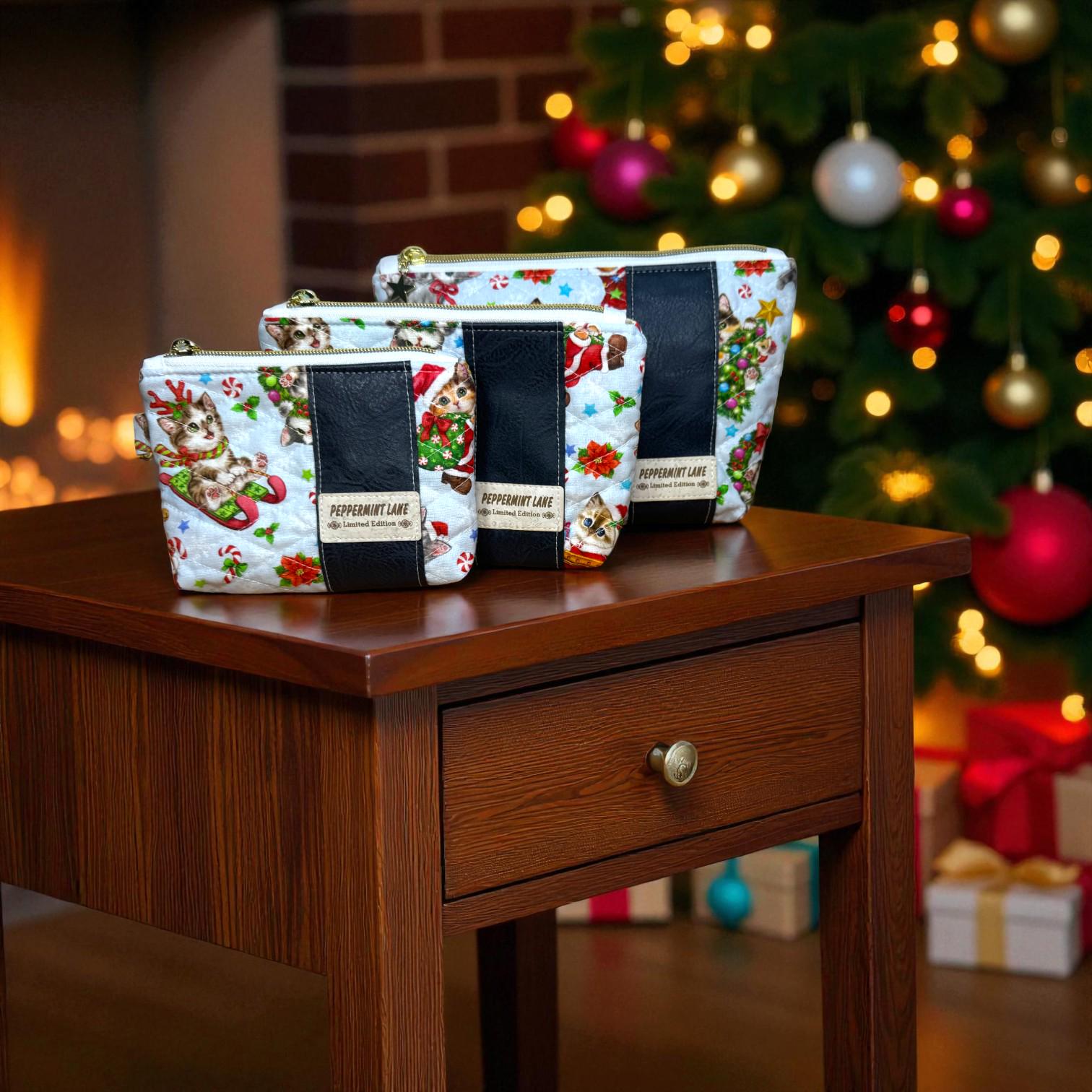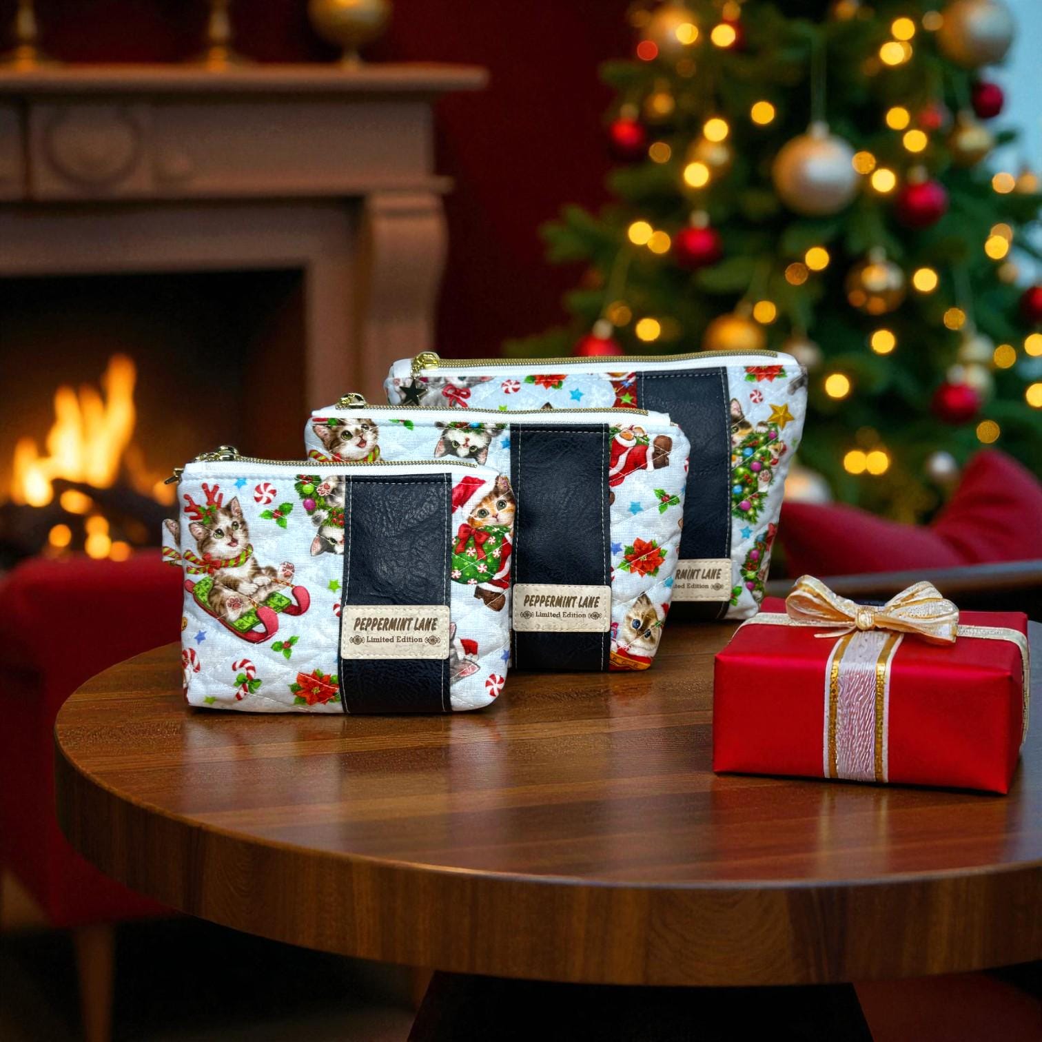 Quilted Pouch Peppermint Lane Limited Edition 2025 – Whimsy’s Collector Set | Cat Cosmetic Bag + Story Zine | Choose Your Size