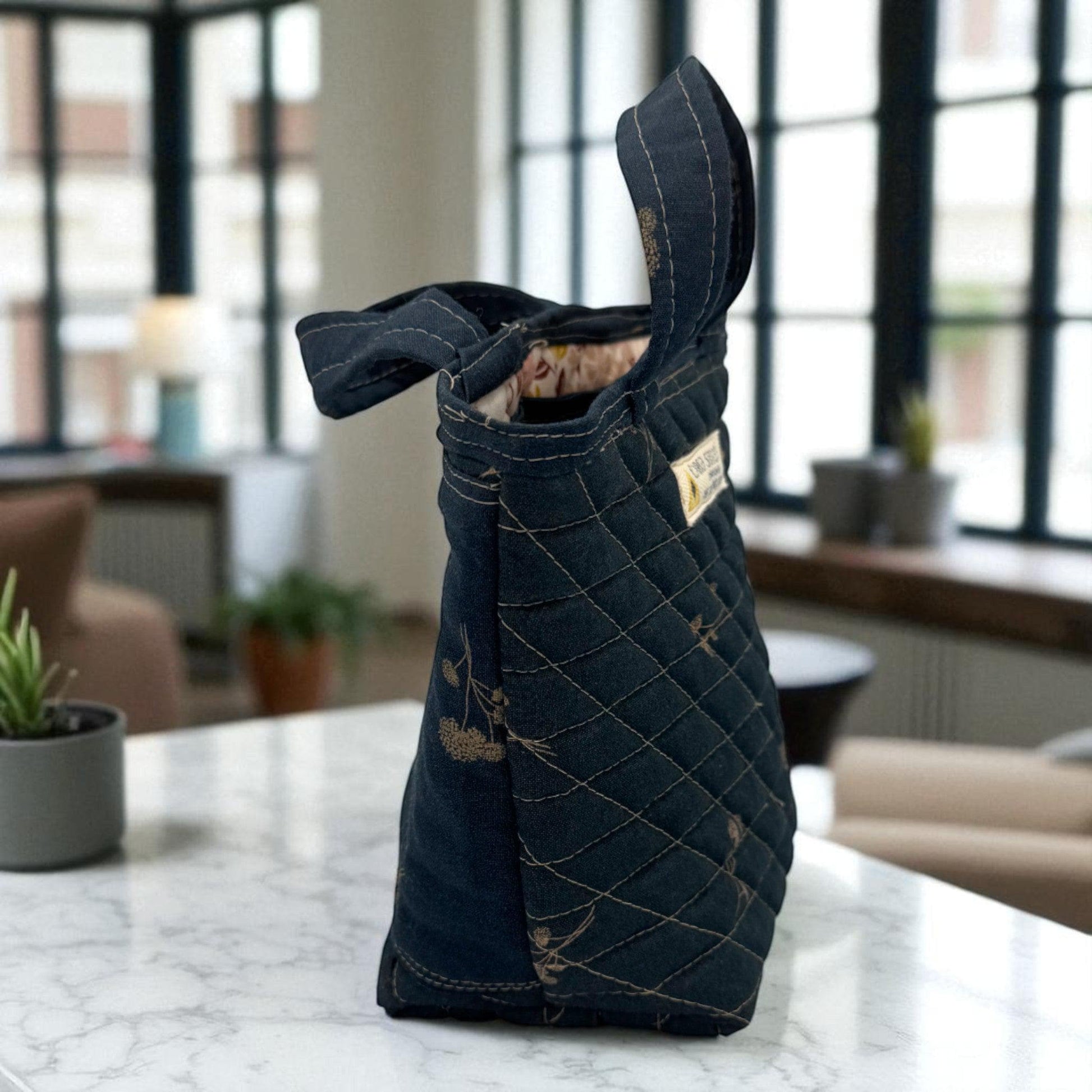 Midnight Garden Handmade Quilted Tote Bag – The Stitcher’s Carry Edition | Artisan-Made Project Bag with Pockets