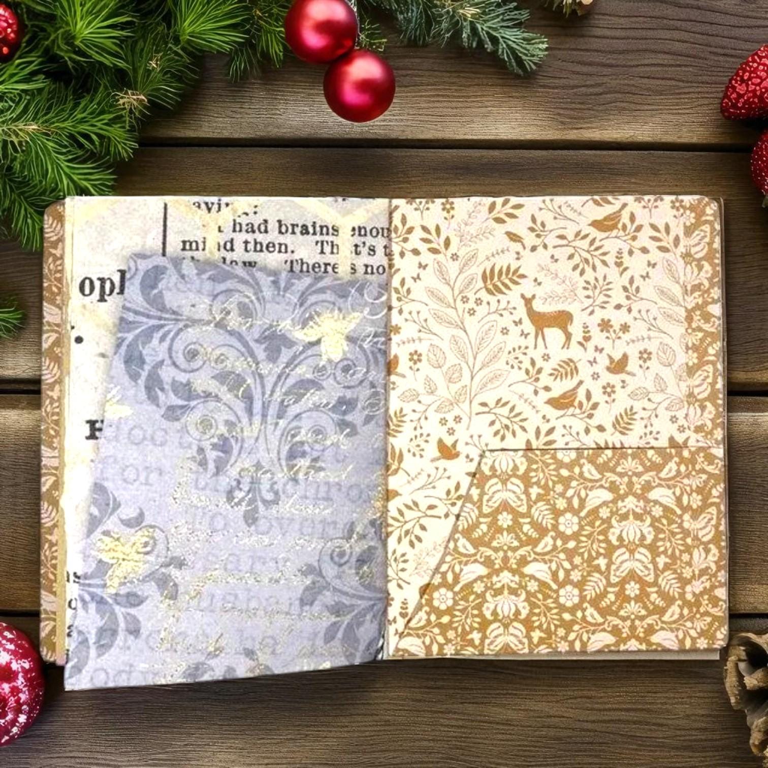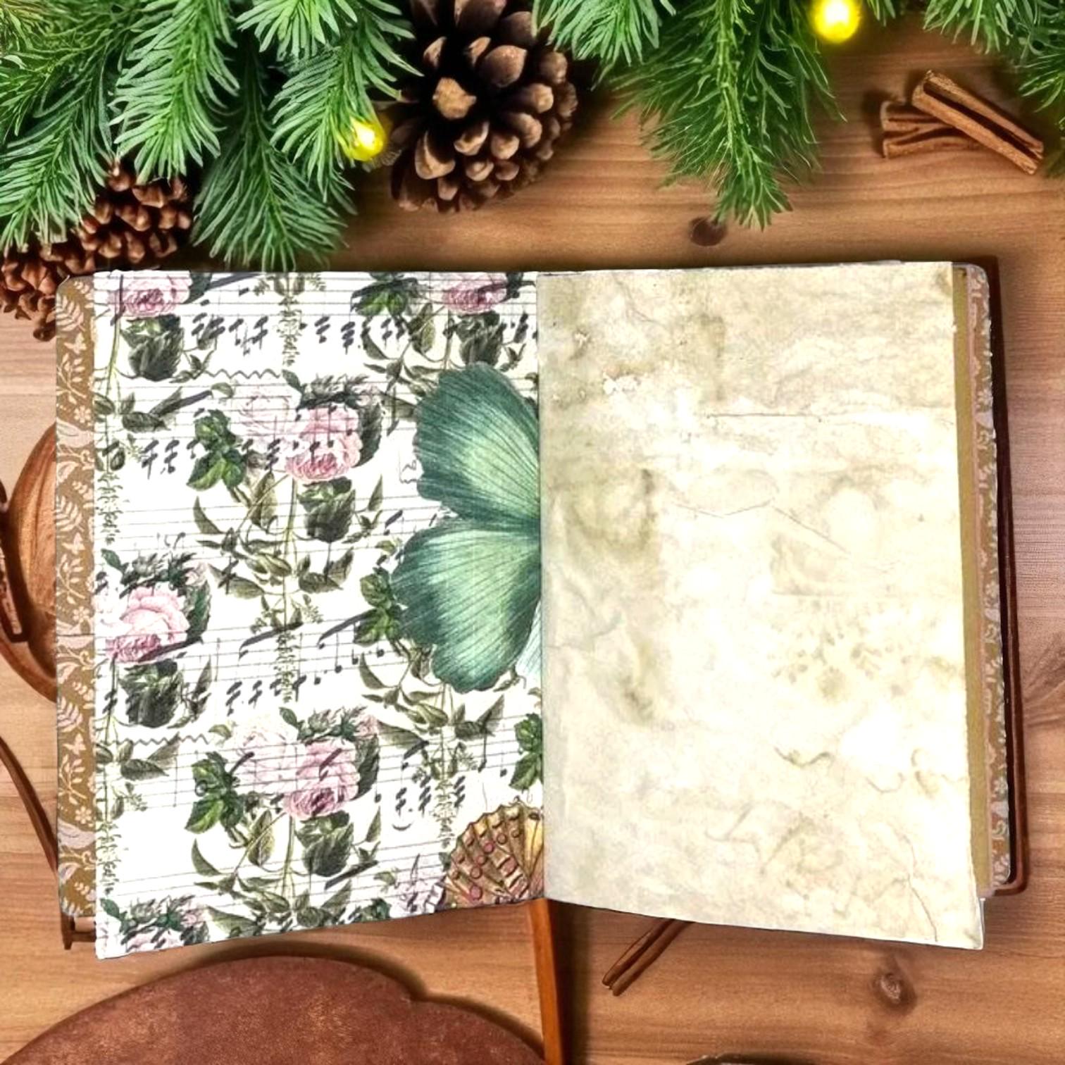 Rose Dream is a handmade B6 junk journal crafted for dreamers and memory keepers. Soft rose motifs, vintage papers, stitched layers, and tuck-in pockets make this more than a notebook - it's a floral refuge for your thoughts.