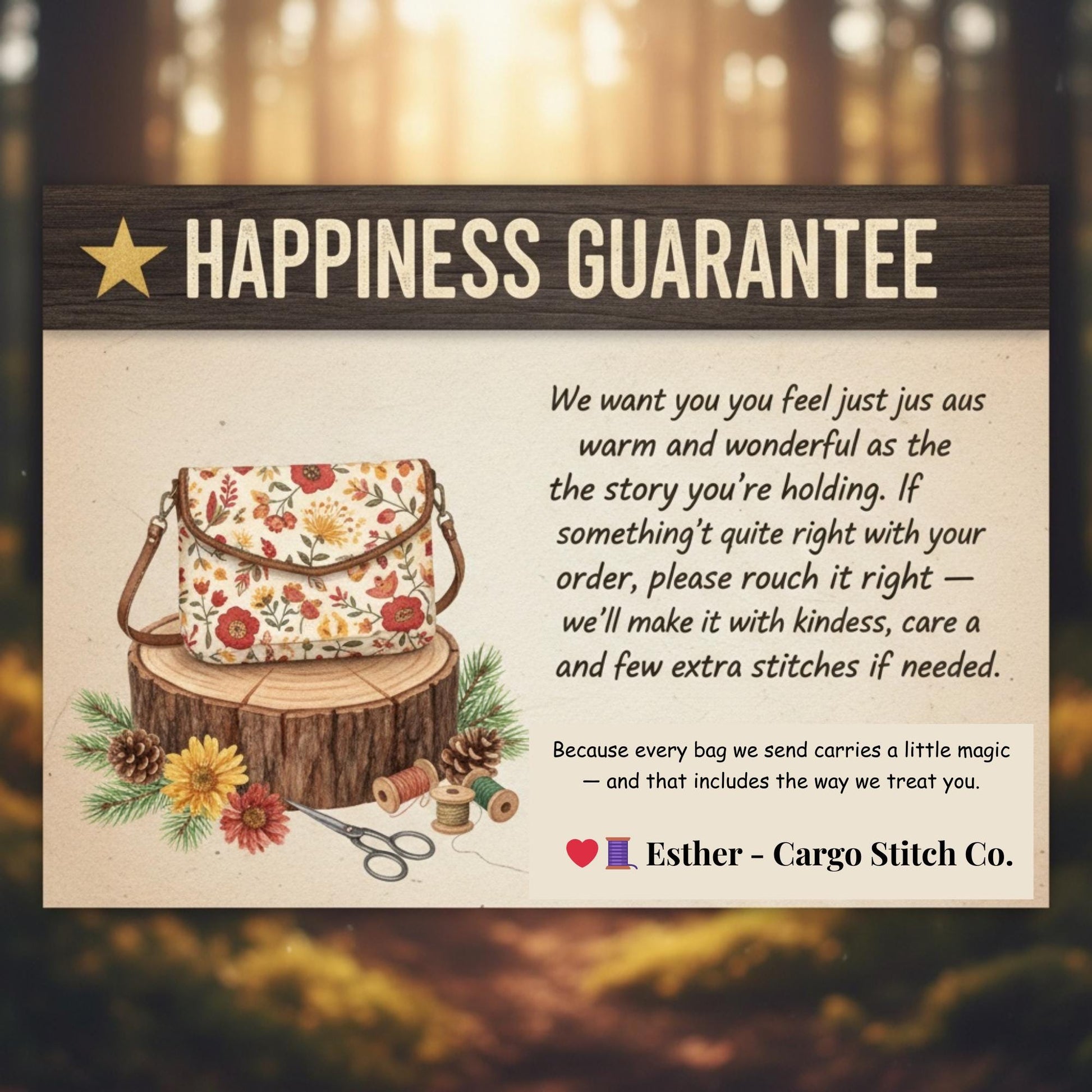 🎨 Fabric Placement: Each bag is one-of-a-kind; fabric layout may vary slightly.