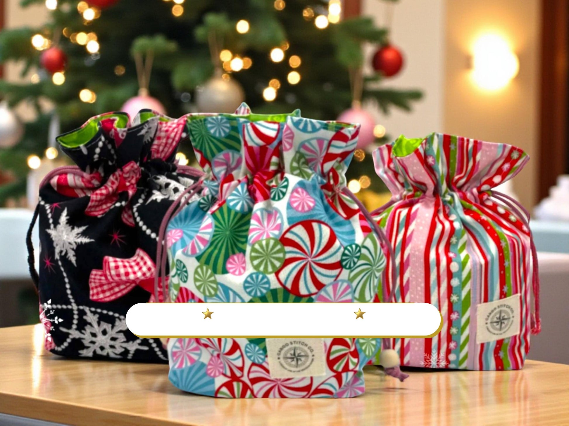 This handcrafted small drawstring bag is part of our exclusive Peppermint Lane Christmas 2025 Collection - a limited edition series celebrating the wonder and whimsy of the holiday season. Perfect for gift-giving, party favors, small treasures, or organizing your crafting supplies with festive flair!