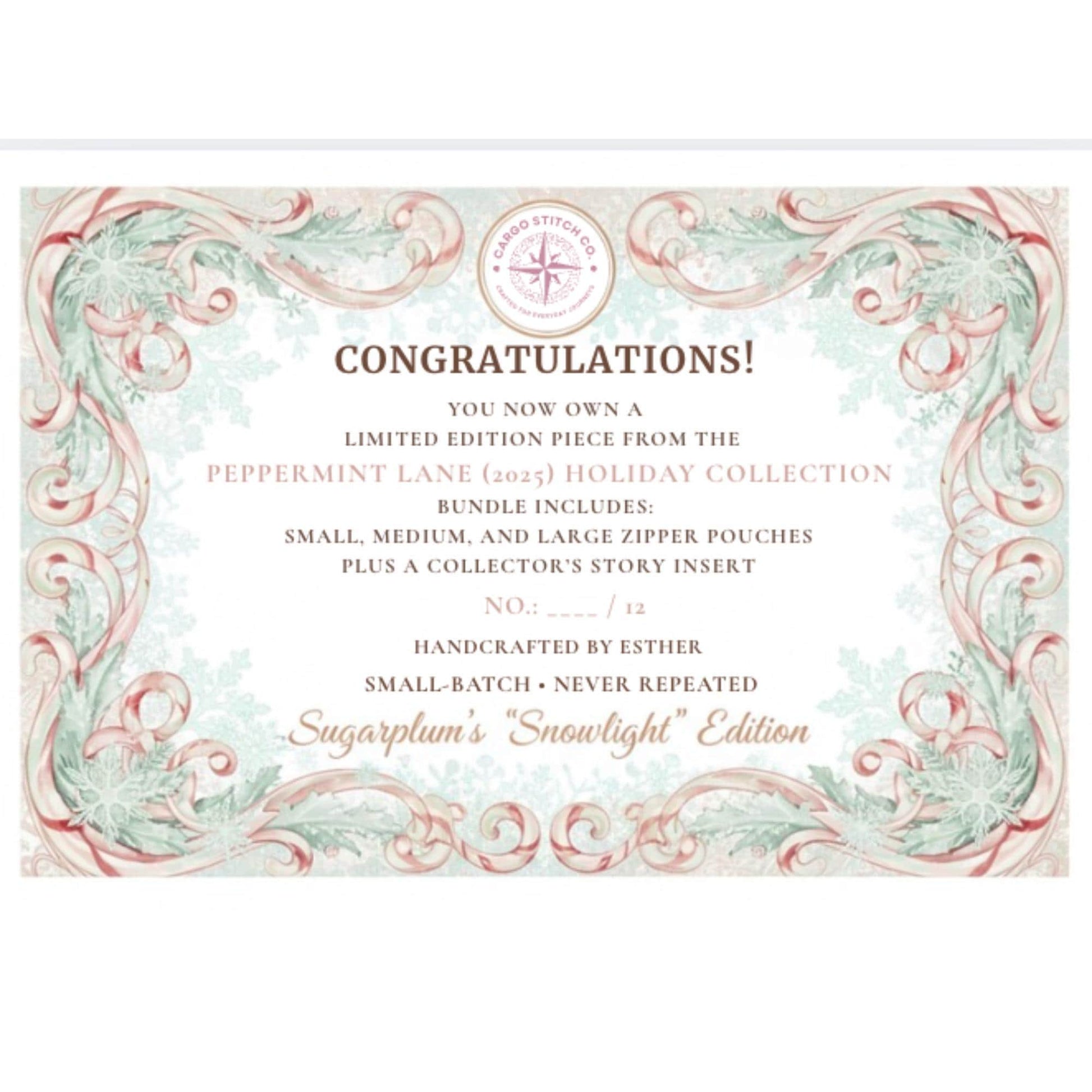 Follow @CargoStitchCo for behind-the-scenes stitching, story reveals, and early access to future Peppermint Lane releases.