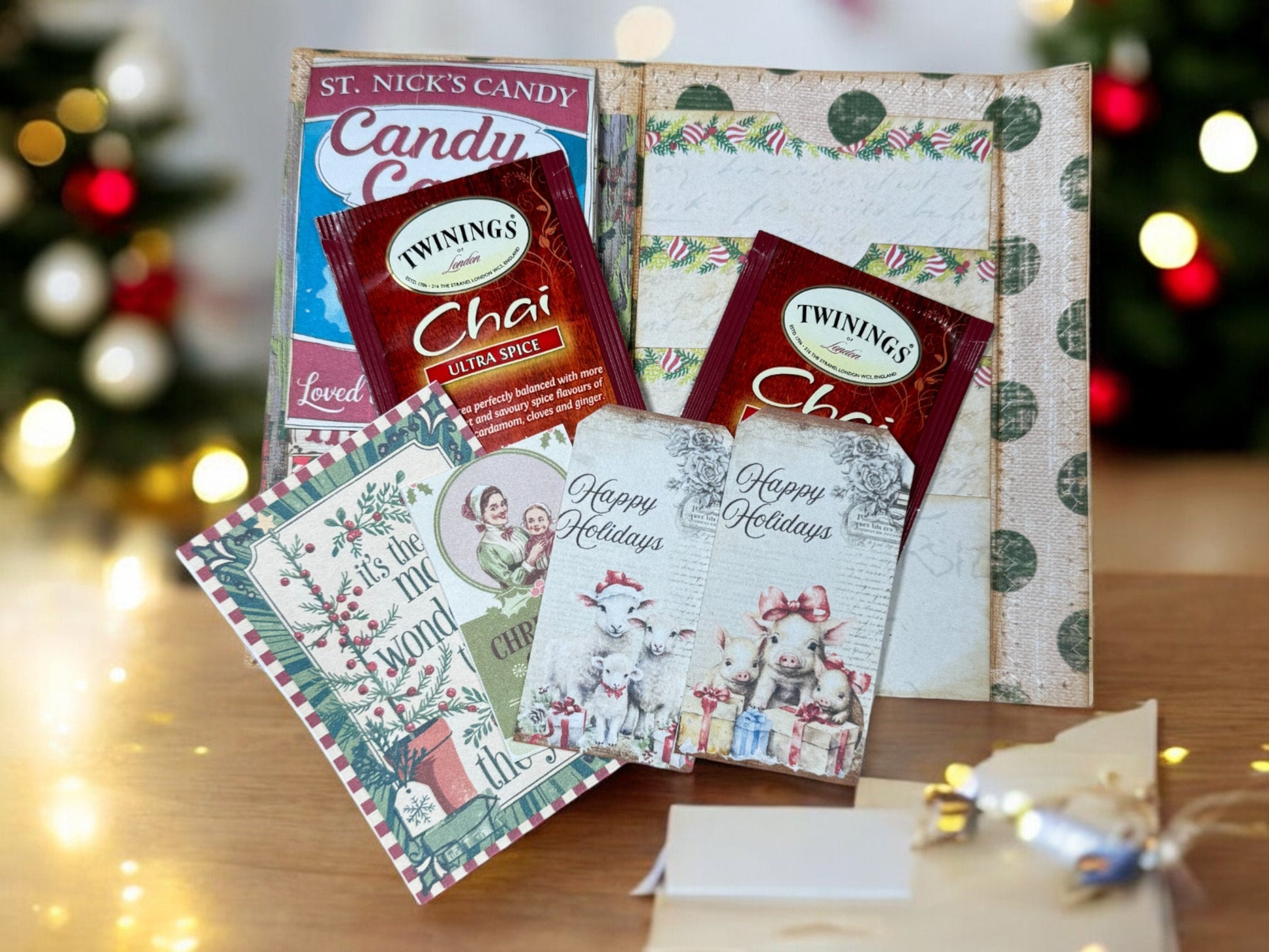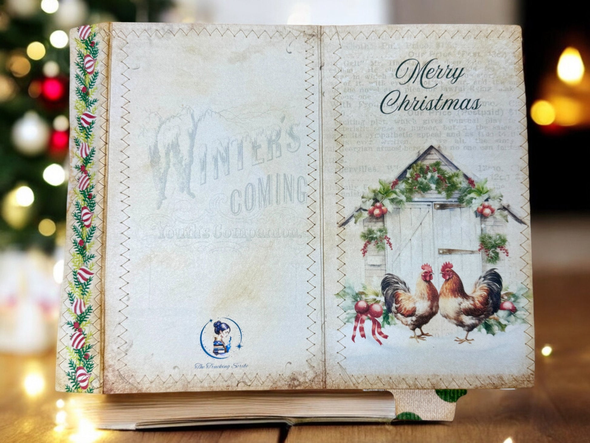 Vintage Christmas On The Farm Folio, Old Farmhouse Junk Journal, Rustic Barn, Cozy Farm Animals, Homespun Theme, Interactive Waterfall