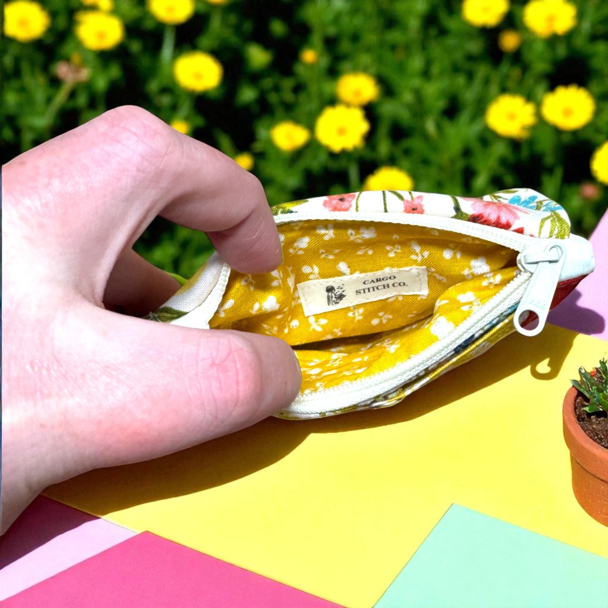 Wildflower Road Manifest Mini Wallet - Quilted Cotton ID Wallet | Nature Print Card Holder | Handmade Minimalist Wallet
