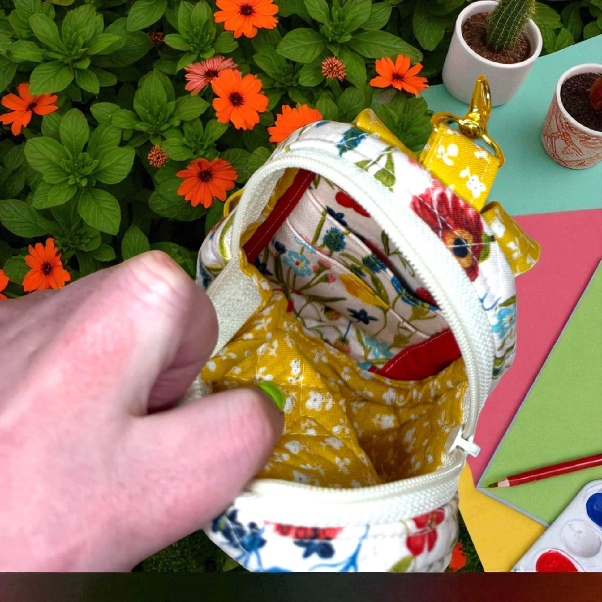 Wildflower Road Mini Backpack, Tiny Quilted Floral Backpack, Handmade Keychain Bag, Small Travel Pouch, Cute Floral Festival Bag