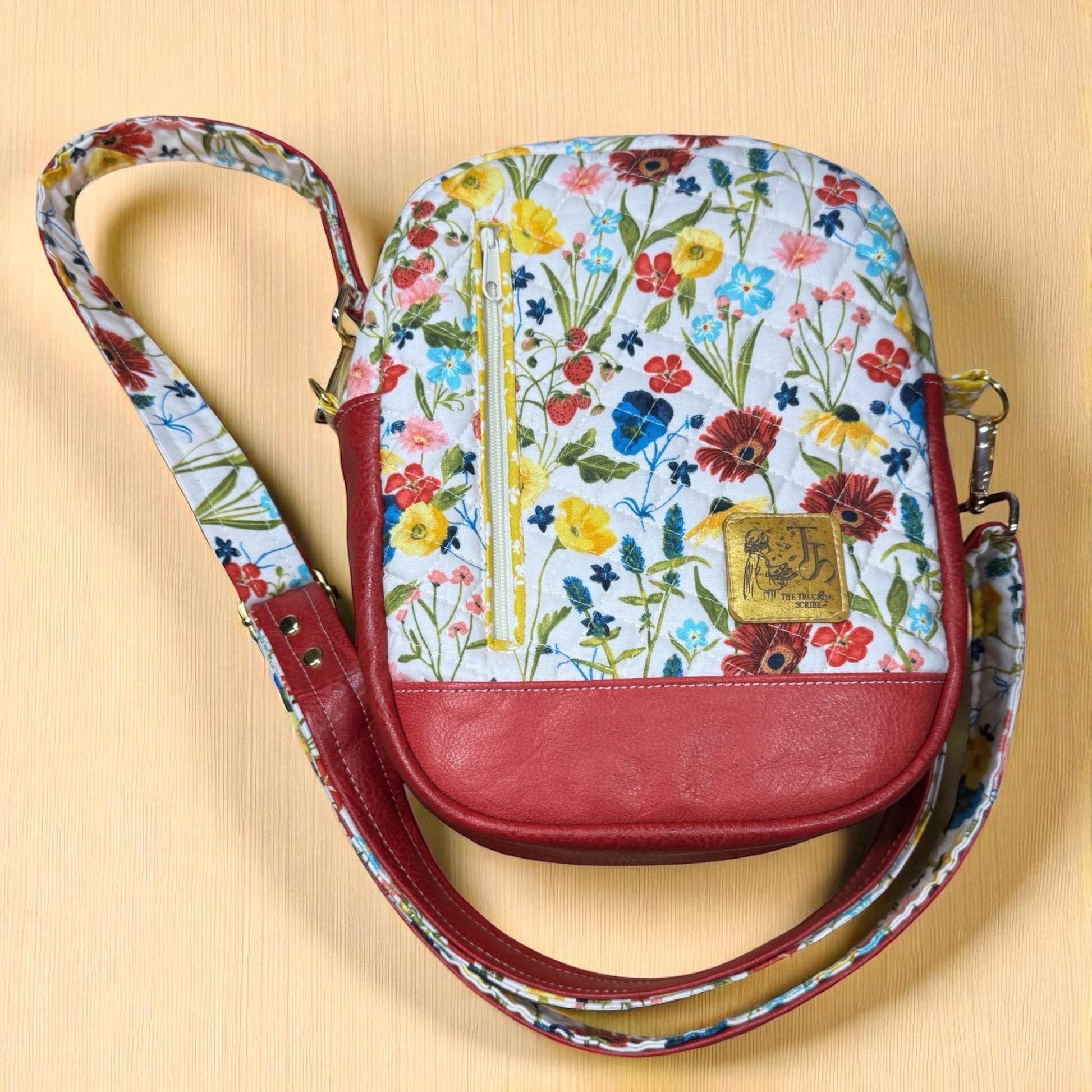 * Material: Premium quilted cotton exterior in wildflower print, with a bold red vinyl gusset for added durability and style.
