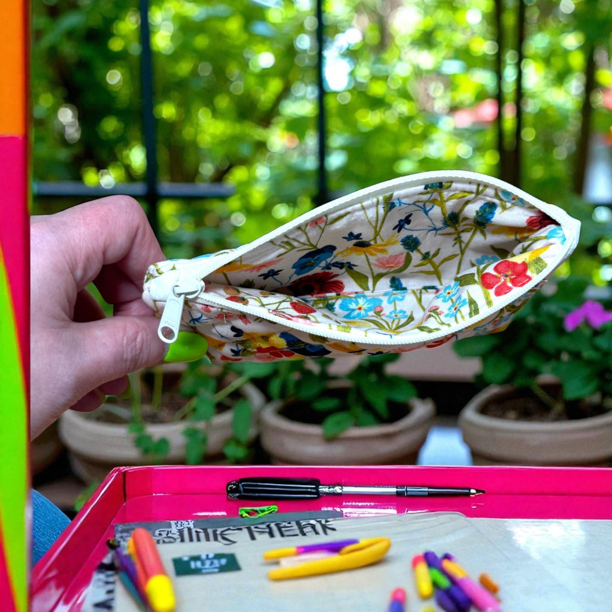 Perfect as a glasses case, pencil pouch, or small travel accessory bag - it's as functional as it is eye-catching. Handmade from premium quilted cotton in a lively wildflower print, the Vista Pouch adds a burst of joy wherever you go.